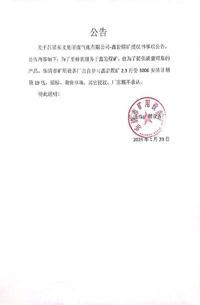 由于呂梁東義集團煤氣化有限公司-鑫巖煤礦授權書事項公告,公告內容如下;···